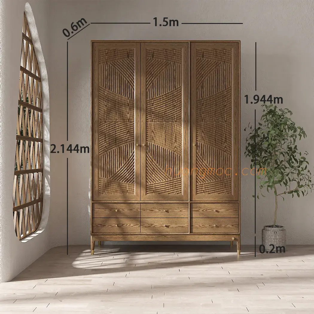 – Thân tủ + cánh + mặt hộc: Gỗ cao su ghép dầy 21mm, tẩm sấy hút chân không phủ venneer Sồi tự nhiên.