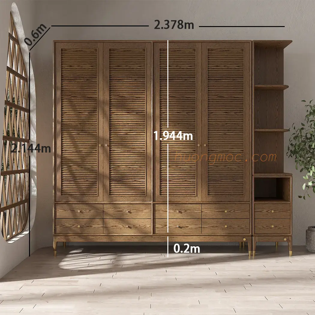 – Thân tủ + cánh + mặt hộc: Gỗ cao su ghép dầy 21mm, tẩm sấy hút chân không phủ venneer Sồi tự nhiên.