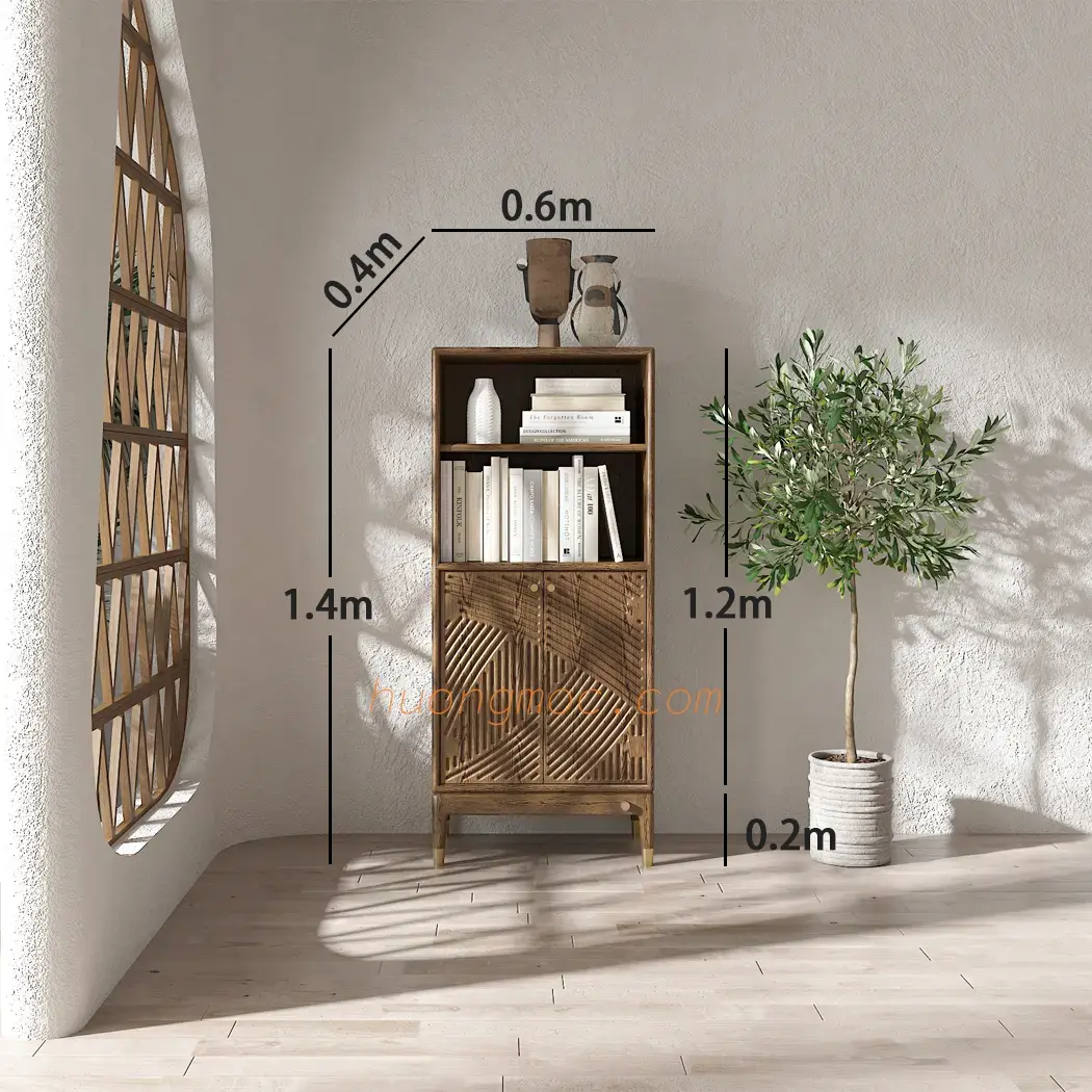 – Thân tủ + cánh: Gỗ cao su ghép dầy 21mm, tẩm sấy hút chân không phủ venneer Sồi tự nhiên.